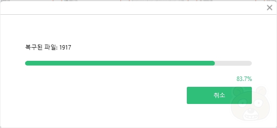 자! 복구가 시작되었습니다. 대략 시간은 30분 정도 걸렸습니다. 복구할 파일이 많으면 많을수록 복구 시간도 비례해서 증가합니다. 참고로 스캔된 정보에서 선택해서 복구할 수 있습니다. 만약 너무 많은 파일들이 스캔되었다면 그 중에서 원하는 파일을 선택해서 복구하면 시간을 훨씬 더 절약할 수 있습니다.