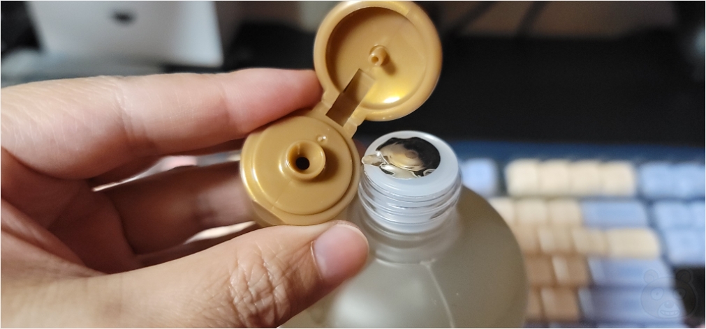 그냥 사용하는 경우라면 수돗물처럼 매우 맑고 투명하기에 힘을 잘 못 조절하면 그대로 철철 넘쳐 흘러 나올 것 같습니다. 따라서 이건 무조건 펌프통에 넣고 아무리 세개 눌러도 정량으로 덜어쓰는게 정석입니다.
