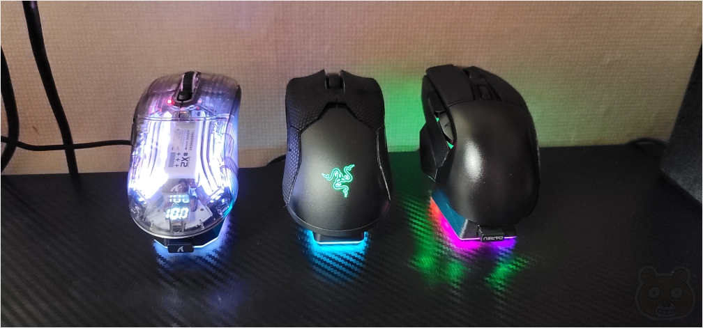 이제 셋 중에서 아무거나 골라잡아서 사용하면 됩니다. X2 Pro 마우스의 그립감은 레이저 바이퍼 얼티메이트와 상당히 유사합니다.