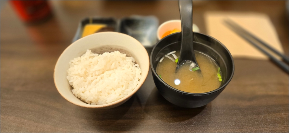 이윽고 갓 지은 밥과 미소 된장국이 나왔습니다. 저는 국 킬러에요. 왠만한 국 요리는 모두 좋아합니다.