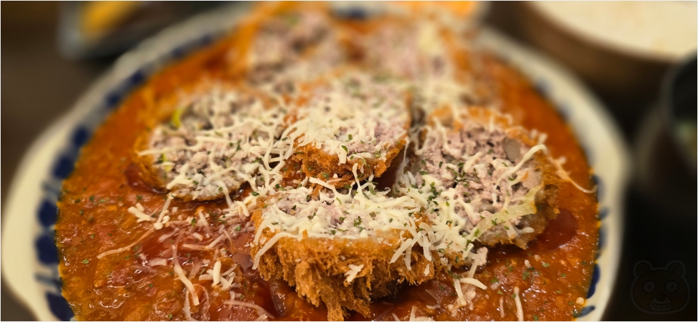 토마토 소스를 베이스로 한 카츠볼! 왜 이걸로 주문했냐면 전 날 잠 들기 전에 치킨으로 폭식을 했기 때문입니다. 속이 다소 느끼했기에 토마토로 상콤하게 입가심을 하고 싶었어요.