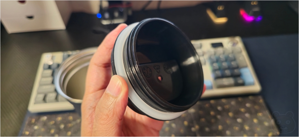 뚜껑 주변부로 실리콘 고무링이 있어서 잘 막아줍니다.