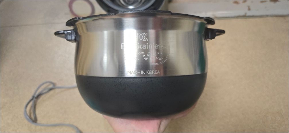 일단 안쪽이 뭔가 다릅니다. 열 전달 방식이 완전 달라요. 이게 IH압력밥솥과의 차이인가 싶기도 합니다.