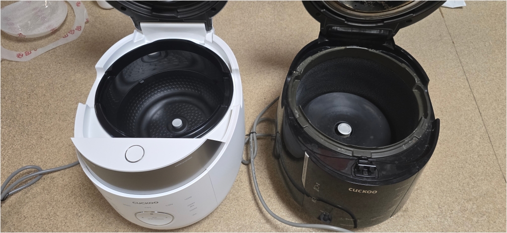 왼쪽이 이번에 구매한 쿠쿠, 오른쪽이 기존에 사용중인 쿠쿠입니다. 일단 지저분한걸 떠나서 구조 부분을 눈여겨 봐주시기 바랍니다.
