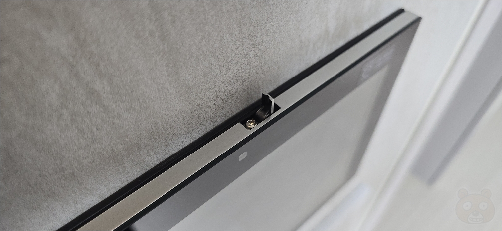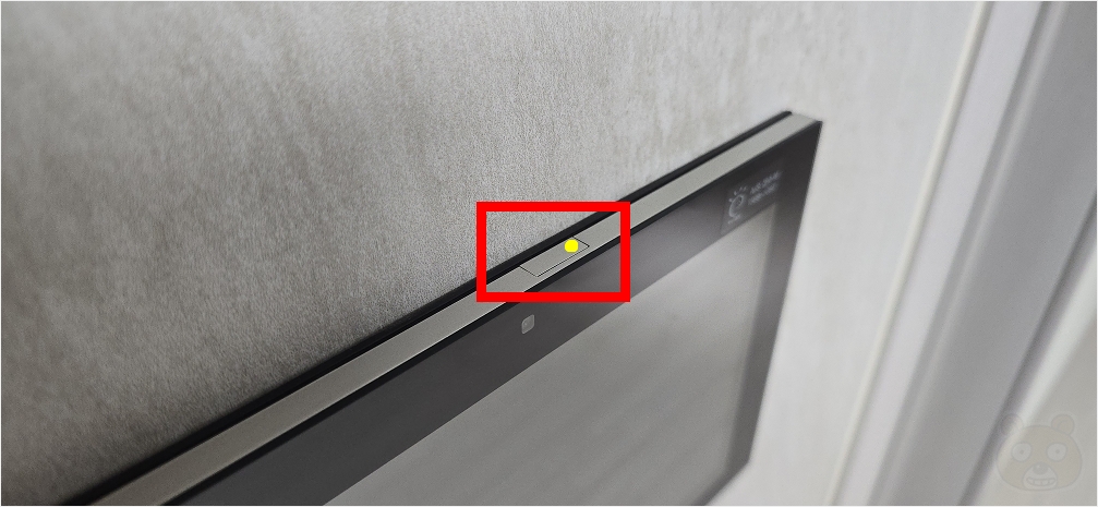 월패드마다 위치가 상이할텐데 보통 위/아래 쪽에 보시면 뭔가 다른 공간처럼 보이는 부분이 있을겁니다. 저희집 월패드의 경우에는 위쪽에 있군요. 빨간색으로 표시한 부분입니다. 거기에서 노란색 점을 찍어둔 부분을 눌러줍니다. 손가락으로 눌러도 됩니다. 십자 드라이버로는 살살 누르시거나 그냥 면봉으로 눌러주세요. 스크래치가 생길 수 있으니까요.