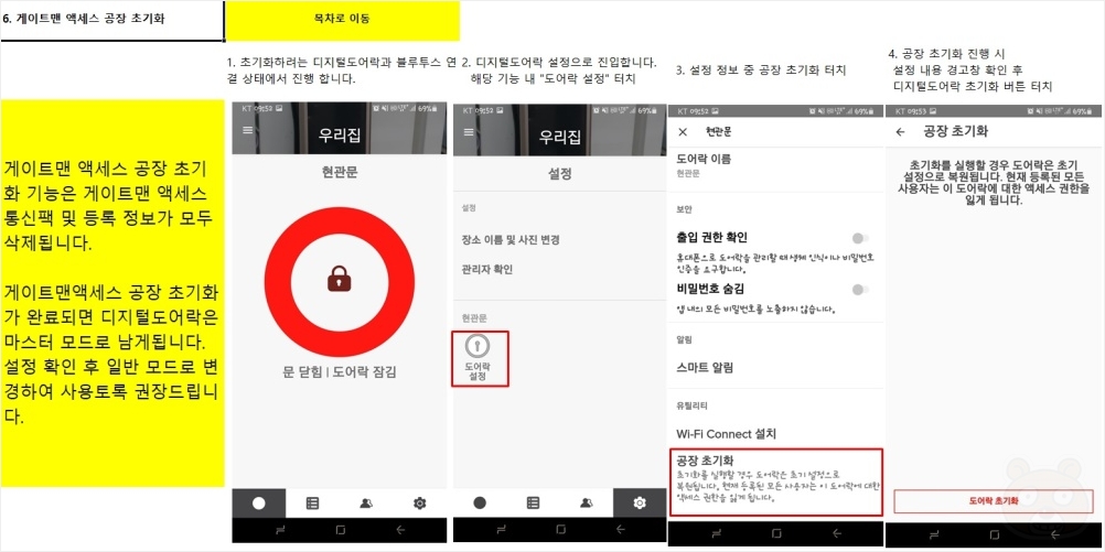 게이트맨 액세스 APP 공장초기화 > 도어락 물리 공장초기화 > 월패드 연동기 재동기화