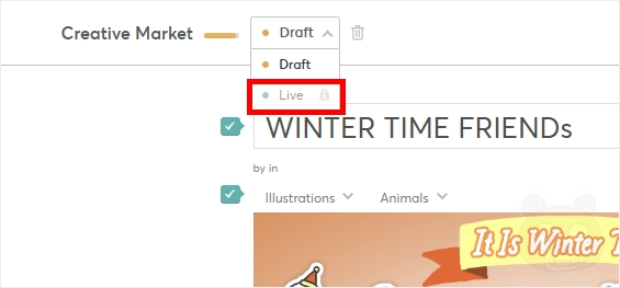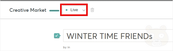이제 왼쪽 상단의 Creative Market 상태를 Draft에서 Live로 변경합니다. 참고로 모두 다 입력이 제대로 되어야 Live가 활성화 됩니다.