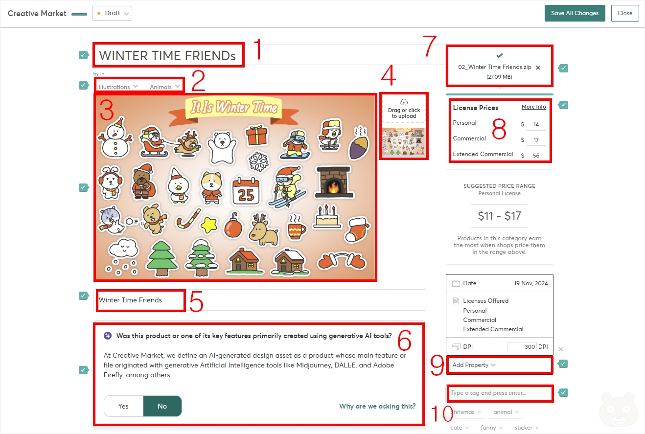 이렇게 입력하시면 됩니다. 6번의 경우에는 당연히 AI로 생성한 이미지를 사용하는것은... 솔직히 말이 안 되죠? 소신 발언을 하자면 AI 그림은 그림이 아닙니다. 짜깁기이며 편집의 영역이죠. 그렸다기 보다는 출력했다에 가깝다고 할 수 있겠습니다. 따라서 AI 그림으로 장사를 하겠다는건 진짜 사기꾼이나 다름 없죠.