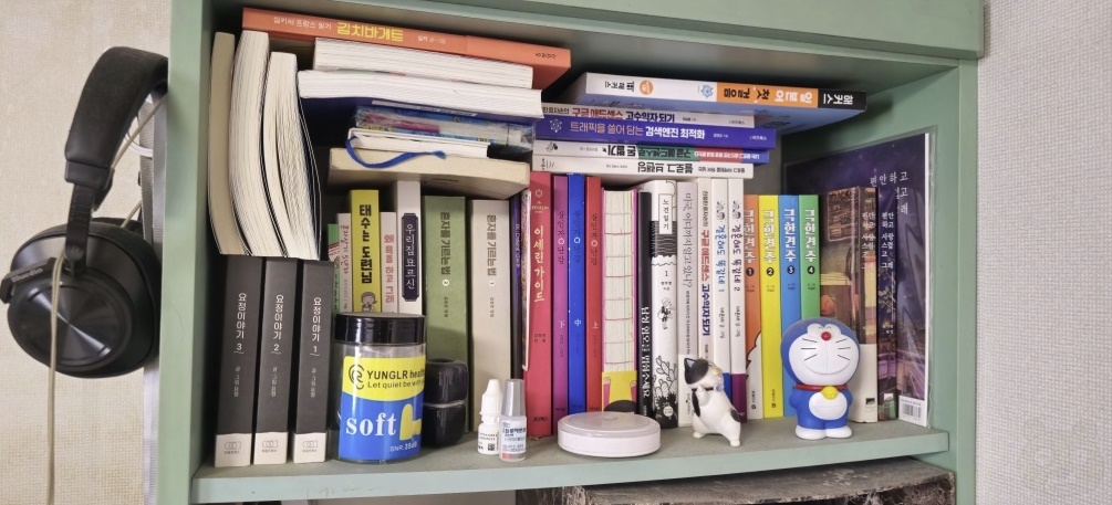 그리고 책장! 이거 진짜 중요한데요, 의외로 제가 소장한 책들이 좀 있어요. 주로 인스타그램 또는 웹툰 작가분들의 단행본인데 단순히 만화라고 생각하시면 큰 오산입니다. 철학적인 내용도 있고 교훈을 주는 내용도 많아요. 추천해드리고 싶은 책들이 참 많은데 이건 이사 이후 책 소개에 대한 글을 다시 하나하나 정리해 나가 보도록 하겠습니다. 또한 PC 책상 주변도 많은 개선이 필요해 보입니다.