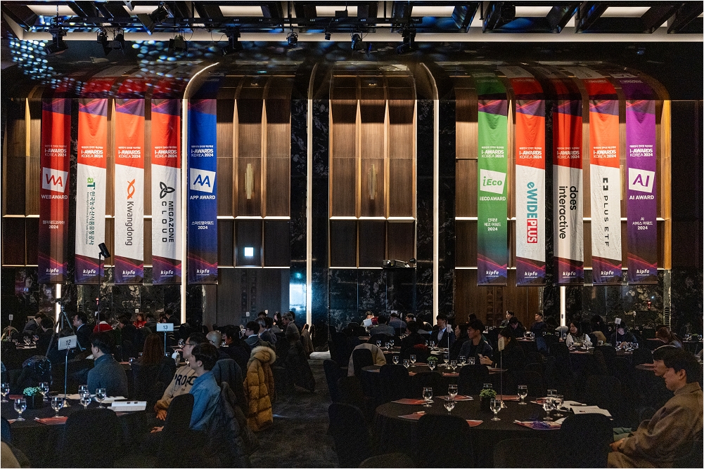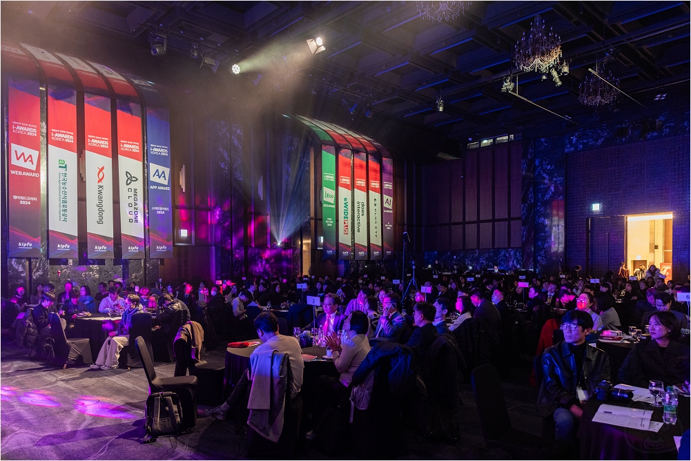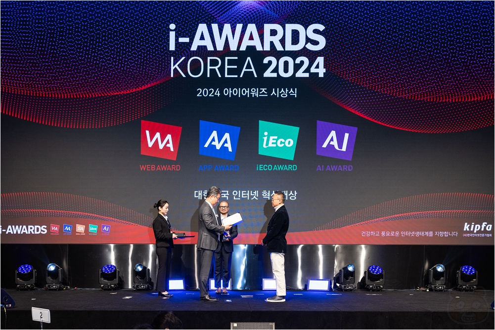아이어워즈 코리아 2024 웹어워드코리아, 스마트앱어워드, 인터넷에코어워드, AI서비스어워드에 대한 수상을 진행하고 있습니다.