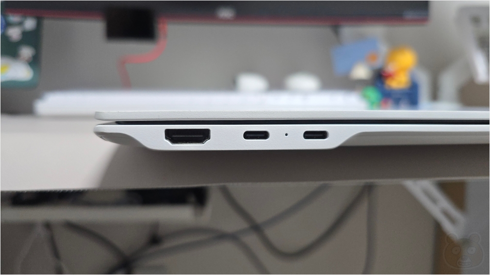 왼쪽에는 HDMI 포트와 그토록 바라왔던 썬더볼트 4를 지원하는 USB C포트가 무려 두 개입니다. 둘 다 PD충전도 지원하고요. 데이터 송수신도 되고요. 언젠가는 썬더볼트4 외장형 저장장치를 마련해서 진짜 빠르고 뜨거운지를 테스트하려고 합니다.