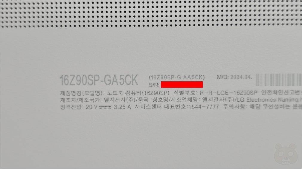 LG 그램도 사양에 따라 모델명이 나뉘는데 제가 구매한 건 16 Z90 SP-GA5 CK 제품입니다. 2024년형이지만 아직도 현역! 이 그램의 사양은 다음과 같습니다.