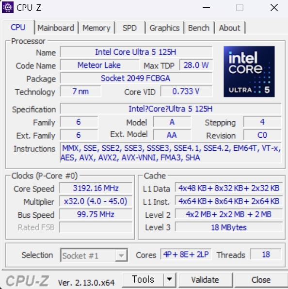 라데온 노트북은 이미 남동생이 가지고 있으니 차세대 인텔 CPU는 진짜 오랜만에 만져보는군요. 인텔이 이제 더 이상 출력 놀음을 멈추고 뭔가 변환점을 맞고 있는 것 같습니다. 제 생각에는 전력 차력쇼에서 라데온 시리즈를 이길 길이 보이지 않으니까 다른 루트를 선택한 게 아닐까 싶습니다. 아무튼 이번 인텔 울트라 5 125H 프로세서! 이 녀석은 같은 브랜드 내에서 데스크톱 프로세서 중 i5-13500H와 거의 비슷합니다. 라이젠 시리즈 중에서는 7640HS와 비슷하고요. 이건 모바일 프로세서죠. 울트라 시리즈도 저전력 CPU라 데스크톱보다는 게임기, 노트북 같은 저전력이 핵심인 디바이스에서 진가를 발휘하는 녀석입니다.