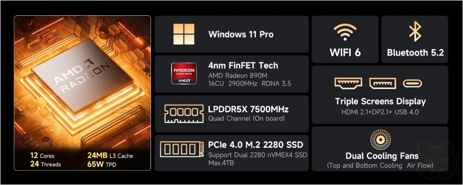 AMD Radeon™ 890M (16 RDNA 3.5 코어, 최대 2.9 GHz)