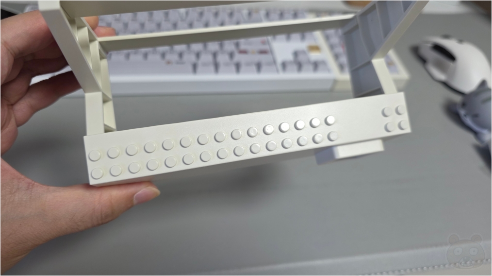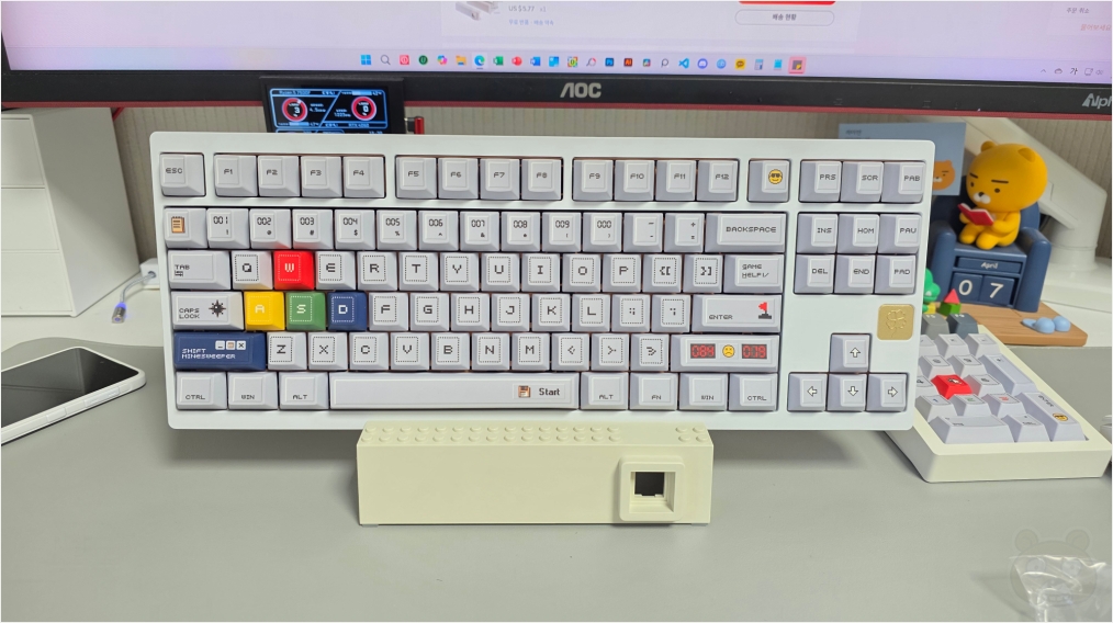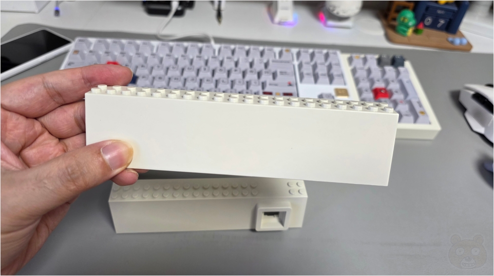 풀배열 키보드도 당연히 잘 거치됩니다. 생각보다 흔들림이 없어서 놀랐습니다. 키보드 무게 중심을 고려해서 설계된 키보드 스탠드라고 생각해야겠죠? 이건 추천입니다. 개성 넘치는 키보드 거치대가 필요하시다면 이 레고 방식의 스탠드 어떠실까요? 이제 추가로 꾸며줄 레고 캐릭터가 도착하면 본문에 추가로 업데이트 하겠습니다. 키보드 스탠드 정보는 아래의 페이지에서 확인하실 수 있습니다. 끝.