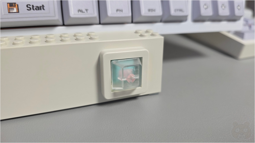 남는 스위치로 한번 꾸며봤습니다. 투명도 나름 느낌이 있어요. 투명 키캡의 경우에는 좀 이쁜 스위치를 사용해야 돋보이는 것 같습니다.