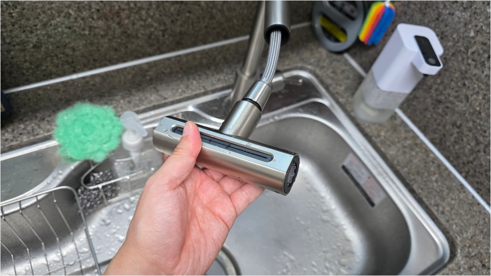주방 수전이니까 당연히 이렇게 빠지고요. 보시면 이 호수가 가장 긴 호수로서 아까 무게추가 달려있던 그 호수입니다. 다시 원위치로 놓고 90도씩 수전을 돌려가며 물이 뿜어져 나오는 모드를 변경 할 수 있습니다. 이 부분은 영상을 찾아보시면 많이 나오기에 굳이 저까지 뭐 물 나오는걸 보여드릴 필요성은 크게 없을 것 같기에 생략하도록 하겠습니다. 오늘의 핵심은 수전 교체가 한 번도 없으시면 일단은 전문가를 고용해 배우는 마음으로 옆에서 관찰했다가 나중에 또 수전 교체 시 써먹으라는 것입니다. 오늘 소개해드린 한샘 주방 수전 JF360S가 궁금하시면 아래의 페이지에서 확인해 보시기 바랍니다. 끝.