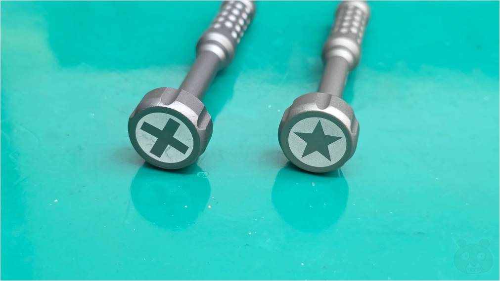 아이폰의 경우에는 갤럭시와는 다르게 사용되는 나사 타입이 총 4개입니다. 십자, Y자, 2중 십자, 그리고 별 나사입니다. 액정 혹은 뒷판을 분해하기 전에 반드시 제거해야 하는 나사가 별나사죠. 단자 양 옆에 고정되어있는 별나사! 그리고 아이폰 나사들은 하나같이 겁나 작아요. 정밀 나사보다 더 작죠. 그래서 일반적인 드라이버를 사용했다가 나사가 손상되는 경우도 가끔씩 있습니다. 그렇기에 아이폰 전용 드라이버는 3D 타입이 좋습니다. 아? 3D가 뭐냐고요? 일반적인 드라이버들은 2D이며 3D 타입은 다음의 후기 내용을 보시면 이해 되실겁니다.
