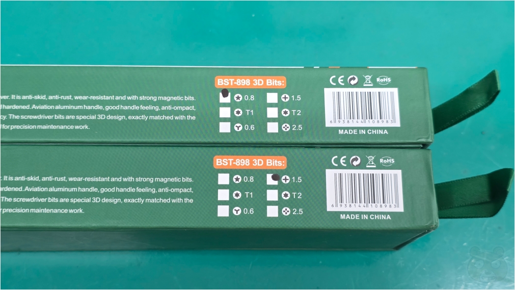 여러 드라이버 브랜드가 있지만 BST-898 제품은 진짜 품질이 너무 괜찮더라고요. 팀장님도 이 제품을 추천해 주셨습니다. 그리고 저 박스에 표시된 드라이버 끝 부분을 보시면 아시겠지만 일반적인 타입이 아니라는거 아실겁니다. 뭔가 도장같은 느낌이죠? 이런 타입을 3D라고 부릅니다.