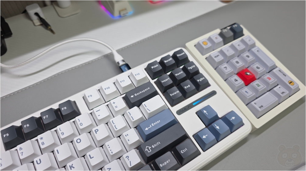 이것이 아우라 독거미 브랜드의 F87 Pro 텐키리스 기계식 키보드입니다.