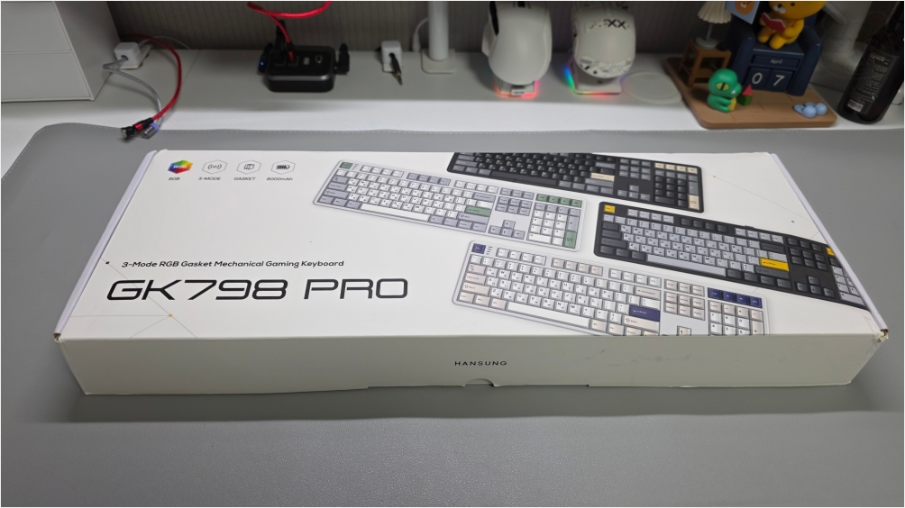 제품은 이겁니다. 제 방은 화이트 톤이기에 당연히 키보드 바디도 화이트로 구매했어요. GK798프로가 화이트 2종입니다. 하나는 메탈화이트, 다른 하나는 오션 화이트죠. 메탈 화이트가 화이트 색상에 가까운 녀석이고 오션 화이트는 아이보리 느낌이 좀 많이 납니다. 저는 순백의 화이트를 원했기에 메탈화이트를 고르게 되었습니다. 키보드 커버도 있어서 좋습니다. 노출된 상태로 장기간 보관할때도 먼지가 가라앉는걸 막아줘서 좋아요.