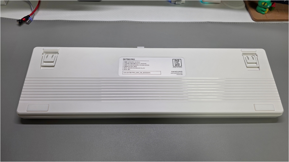 한성 GK798 Pro 키보드는 충전식입니다. 유선 모드일 때 충전도 같이 진행되고요. 내장 배터리는 8,000mAh라 한 번 충전해두면 아주 여유있게 두고 두고 사용 할 수 있습니다. 이 정도 배터리라면 완충 후 LED를 켜둔 상태로 사용한다면 2~3일 정도 쓸 수 있는 수준입니다. LED를 꺼두면 약 보름 정도 쓸 수 있고요.